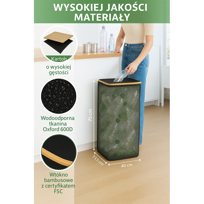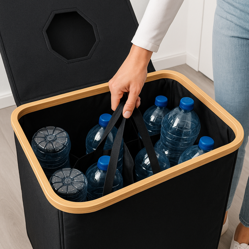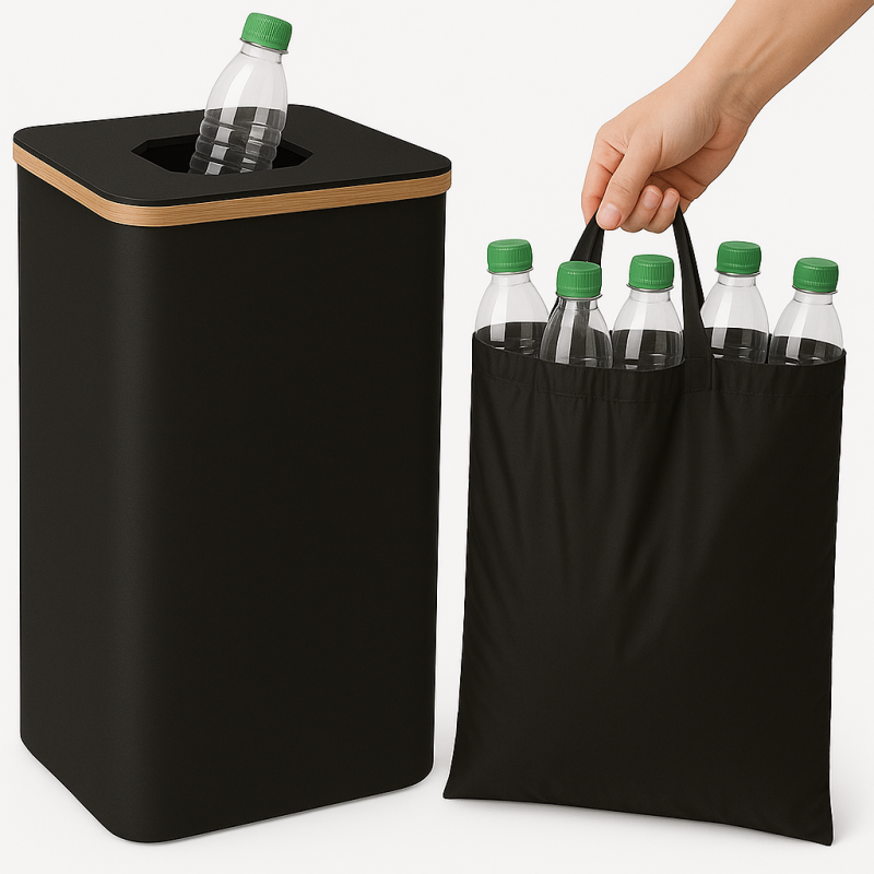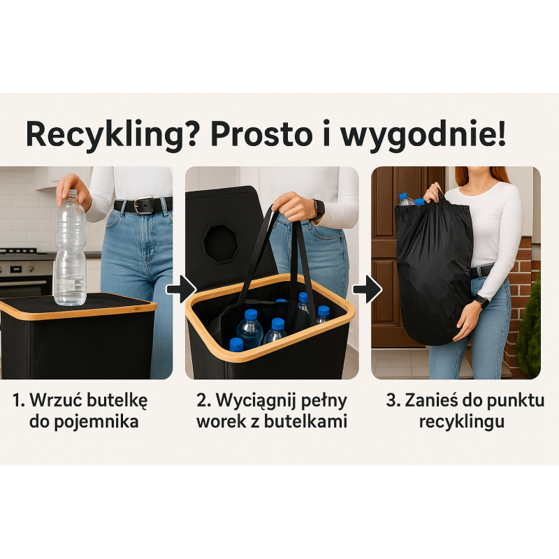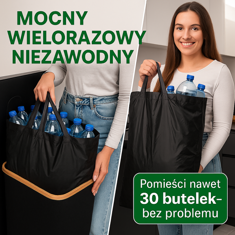 ✔️ Wyjmowany worek – łatwe opróżnianie kosza i przeniesienie butelek do punktu zbiórki opakowań.
